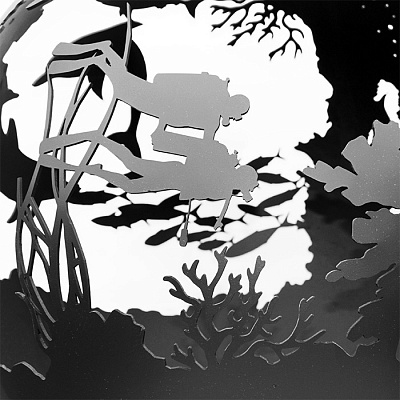 Уличный очаг Подводный мир Firecup моментально приковывает к себе взгляды гостей благодаря своему уникальному дизайну, выполненному вручную. На металлической сфере вырезан подводный мир – через эти прорези во время горения костра пробивается жаркое пламя, которое дарит тепло всем окружающим.