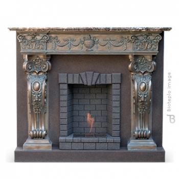 Стилизованные под старинную бронзу полуколонны венчает орнаментальный карниз.