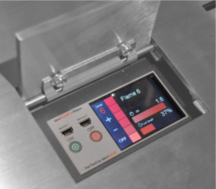 - Индикация уровня топлива и высоты пламени, отображаемая на дисплее, мобильное устройство, «умный дом».