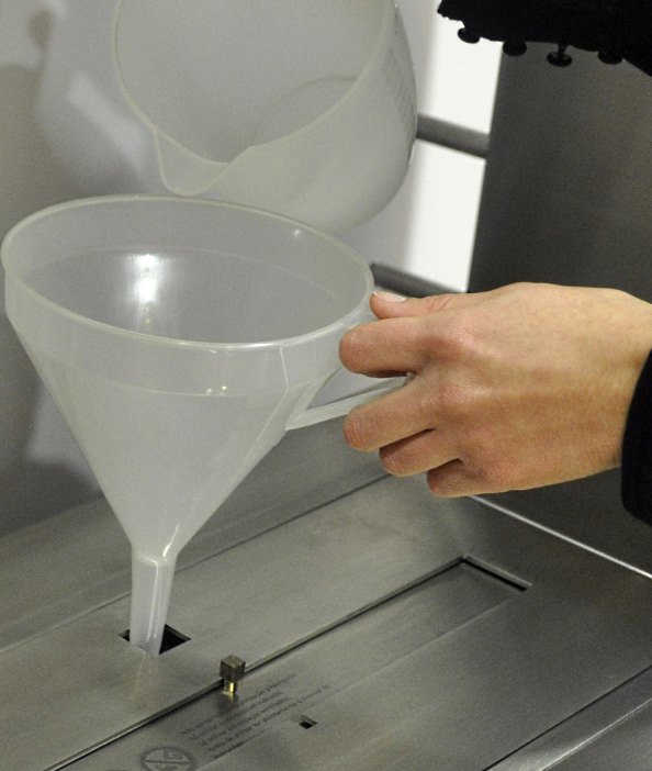 Заправка горелки топливом осуществляется через специальный безопасный клапан, предупреждающий самопроизвольное воспламенение паров топлива. Внутреннее пространство горелки заполнено керамическими вставками, которые впитывают биотопливо и не позволяют ему вылиться из биокамина при опрокидывании.