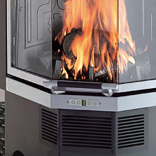 - При необходимости фасад очага закрывается съемным жаропрочным стеклом.