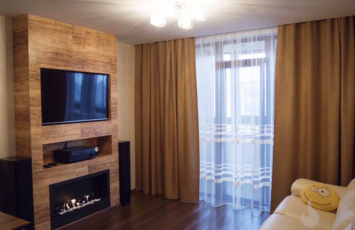 - Компактная, вытянутая по горизонтали, конструкция не будет визуально «опускать» потолок, как это нередко случается с крупноразмерными экокаминами.