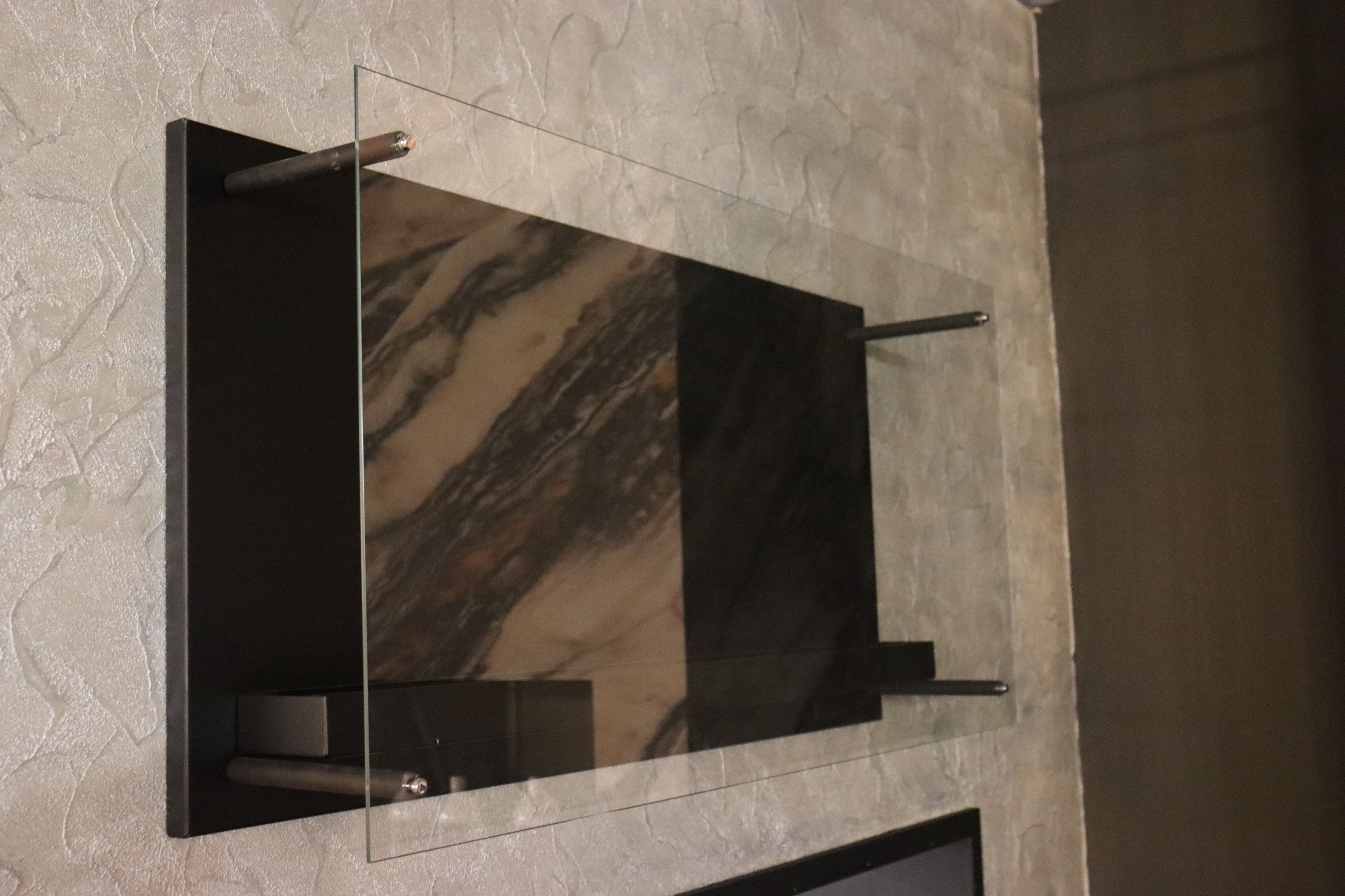 Заднюю стенку Firezo Taglio Vetro можно заменить панелью из тонированного закаленного стекла Stemalite (не входит в комплект). Это повысит жаропрочность, а также поможет более равномерно распределять тепло.
