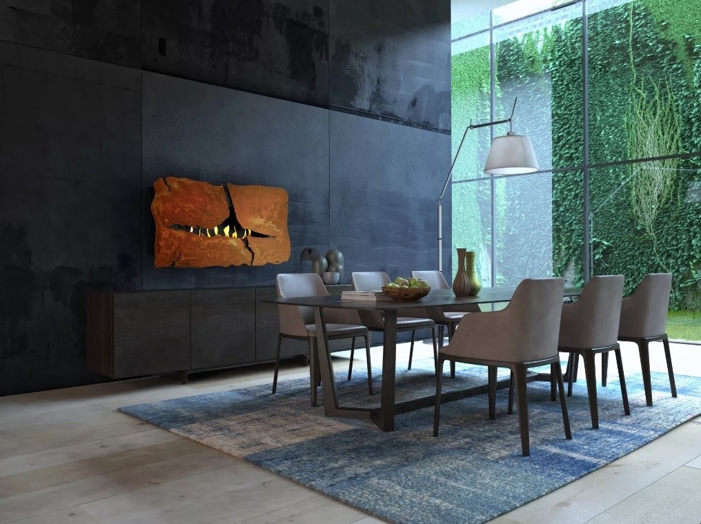 Настенный механический биокамин GlammFire Apollo IV с характерным разрывом металла на фасаде послужит ярким авангардным акцентом любого модного интерьера.