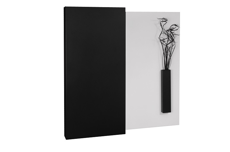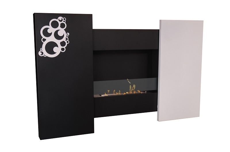 • Дизайнерское панно превращается в современный биокамин благодаря системе раздвижных дверок, скользящих по слайдам на шариковых подшипниках.