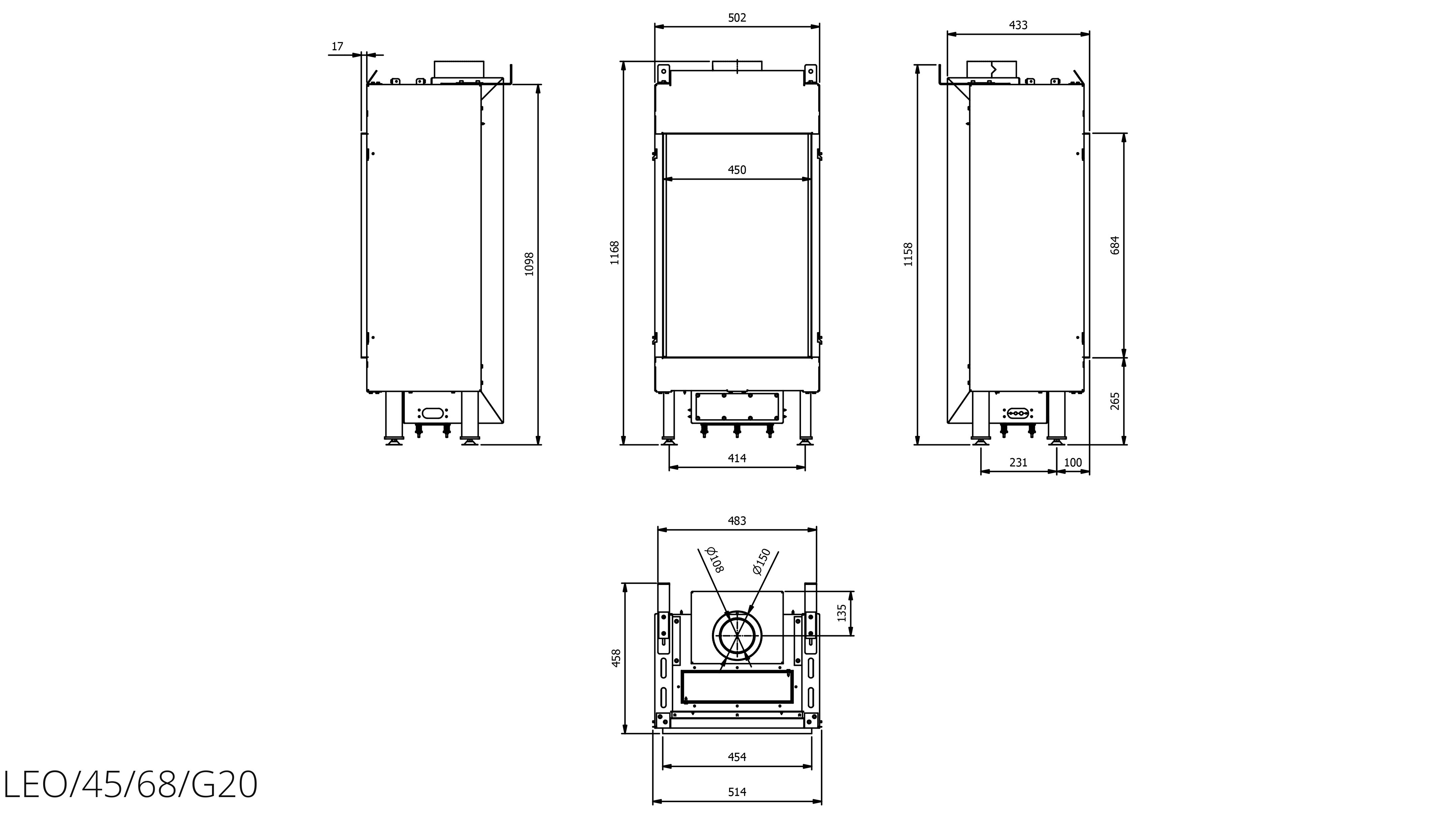 Газовый камин Kratki LEO/45/68/G20 магистральный газ