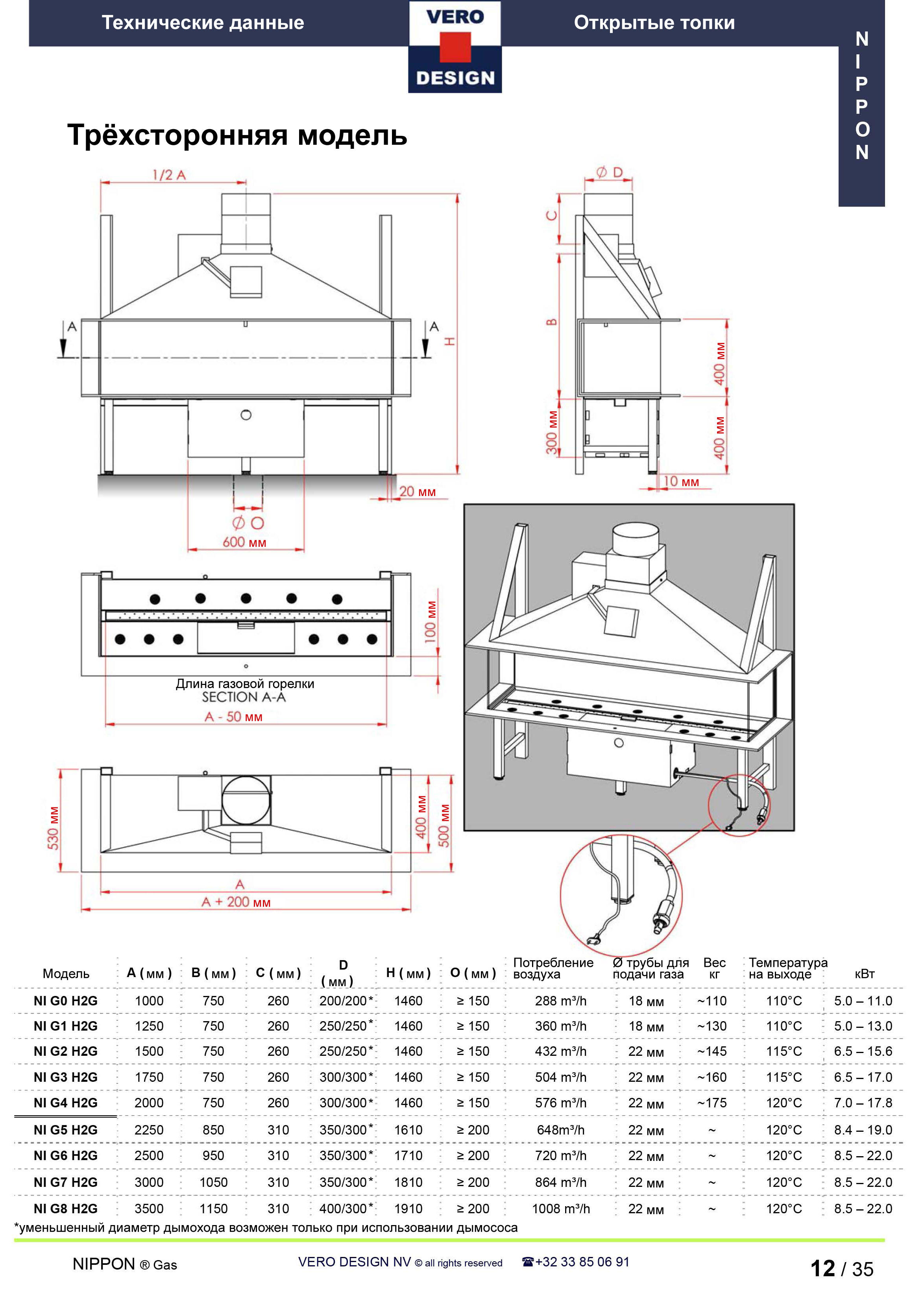 Газовый камин Vero Design Nippon NI G2 H2 G