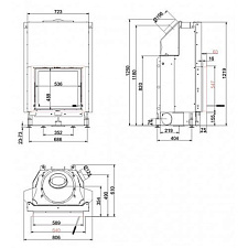 Печь-камин Contura 850 с широкими боковыми стеклами. Оснащен поворотной колосниковой решеткой, выдвижным зольником. Отделка: боковые панели - металл.