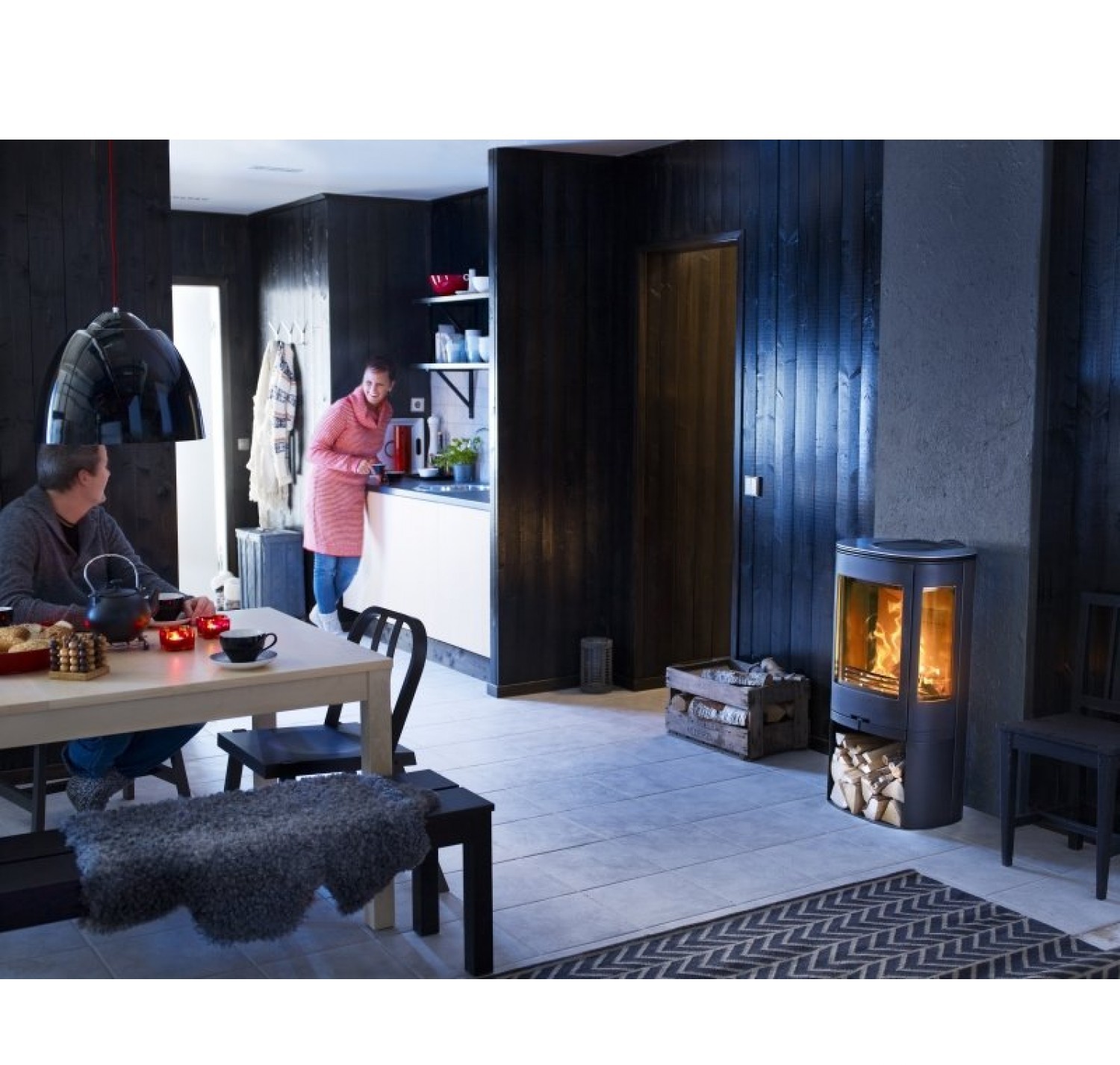 Печь-камин Contura 850 с широкими боковыми стеклами. Оснащен поворотной колосниковой решеткой, выдвижным зольником. Отделка: боковые панели - металл.