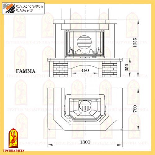 Каминная облицовка Гамма изготовлена из галтованного доломита и натурального мрамора с обработкой "Антик". Верхняя часть камина увенчана балкой, выполненной из МДФ шпона дуба. Каминная облицовка гамма предназначена для оформления стальных и чугунных топок шириной 700 мм.