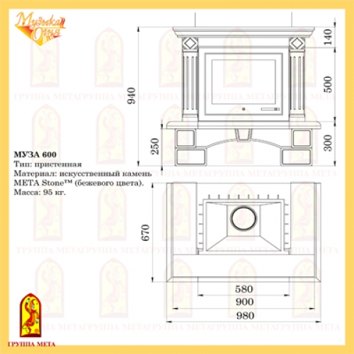 Каминная облицовка Мета Музыка Огня Муза 600