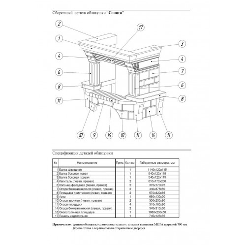Каминная облицовка Соната изготовлена из камня Meta Stone™ мягкого бежевого оттенка. Камень очень прочный и долговечный, не выцветает, идеально подходит для эксплуатации в условиях Российского климата. Предназначена для оформления чугунных и стальных топок как российского, так и импортного производства с шириной фасада 700 мм.