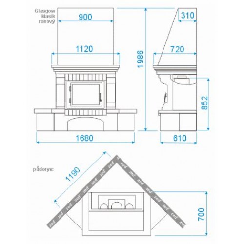 Каминная облицовка ABX Glasgow Klasik (угловой, балка песчаник)