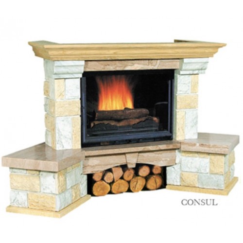 Колоритная каминная облицовка Bella Italia Consul олицетворяет оригинальный творческий поход польских дизайнеров, умело воплощающих классические очертания, оптимальную геометрию и эффектную цветовую палитру. В оформлении облицовки задействованы два вида колотого мрамора белоснежного и солнечного оттенков. На контрасте смотрятся деревянная балка, исполняющая роль каминной полки, и декоративные элементы, изготовленные из двух сортов высококачественного полированного мрамора. Пляшущие язычки живого пламени, облаченные в столь праздничную облицовку, идеально впишутся в интерьер квартиры или частного дома.