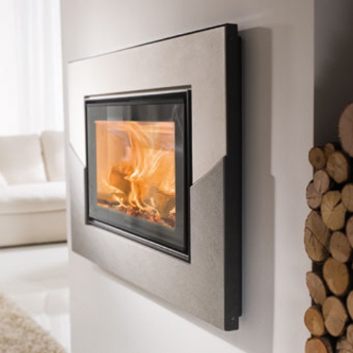 Итальянские дизайнеры разделили облицовку этого встроенного камина Smile надвое. Нижняя ее часть выполнена из натурального камня темного оттенка, тогда как верхняя, отделана темным и довольно контрастным материалом. В подобном обрамлении Ваш домашний очаг будет не только согревать Вас своим теплом, но и радовать всех окружающих своим дизайном.