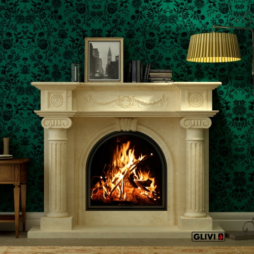 - Камин выполнен из полированного мрамора Crema Marfil.