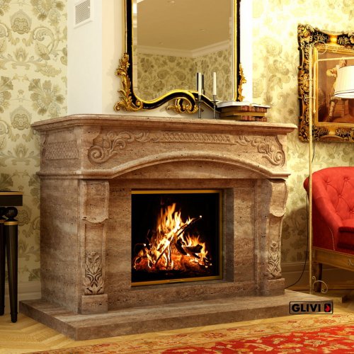 - Камин выполнен из состаренного травертина Noce.