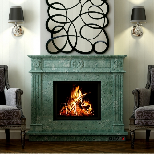 - Камин выполнен из полированного мрамора Verde Guatemala.