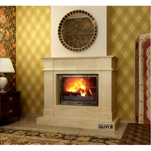- Камин выполнен из полированного мрамора Crema Marfil.