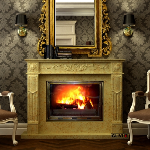 - Камин выполнен из полированного мрамора Giallo Rena.