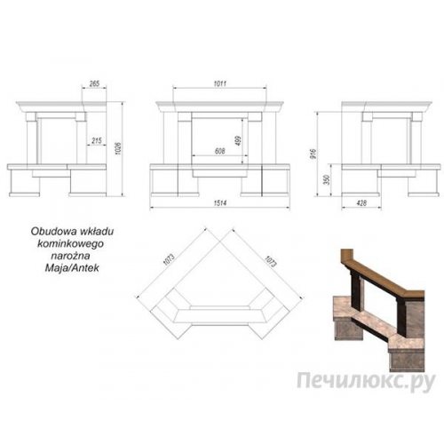 Каминная облицовка Kratki Etna угловая (Maja/Antek)