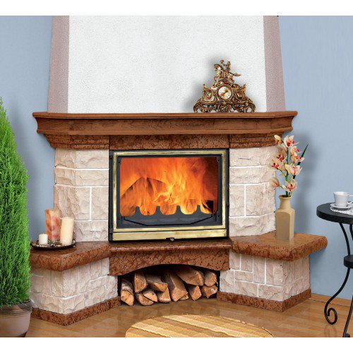 По конструкции мраморная облицовка для камина Rosa угловая, основную конструкцию каминного портала продолжаю выступы каминной полки. Под местом для закрытой каминной топки предусмотрено место для хранения дров. Представленный каминный портал входит в серию Prestige.
