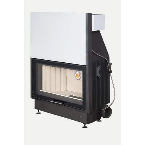 Входные патрубки ф125мм,расположенные слева и справа в нижней части печи, служат для подводки воздуха для горения, вторичного дожига и отчистки стекла, позволяют брать воздух через систему трубопроводов для горения из другого помещения (например подвального). Дымоходный патрубок ф250мм снабжен встроенной шиберной заслонкой с дистанционным приводом, выполненным из нержавеющей стали, Позволяющей в зависимости от уровня горения регулировать тягу. В горизонтальном положении, положение закрыто, перекрытие патрубка шиберной заслонкой составляет 75%, что не позволит скапливаться угарному газу. Конвекционные патрубки ф125мм в верхней части топки, служат для отвода теплого воздуха по трубопроводам от печи , для равномерного прогрева помещения и/или обогрева другой комнаты. Механизмы регулировок и подъёма двери , кроме привода шиберной заслонки, защищены кожухами от повреждения во время монтажа и эксплуатации. Предусмотрены съёмные проушины, для удобства транспортировки и монтажа. Футеровка топки выполнена из литьевого шамота.
