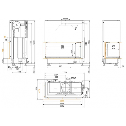 Каминная топка Brunner Architecture-Eck 45/101/40 с правым углом