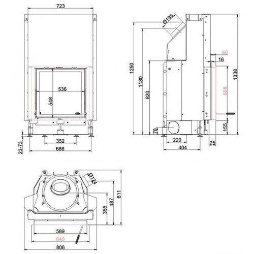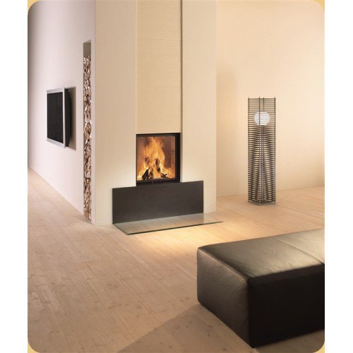 Стальная топка с прямым стеклом. Подъёмная дверца (система Easy-Lift). Горизонтальное открывание двери для чистки стекла. Ширина дверки 536 мм, высота - 548 мм.Возможно подключение воздуха из-вне.
