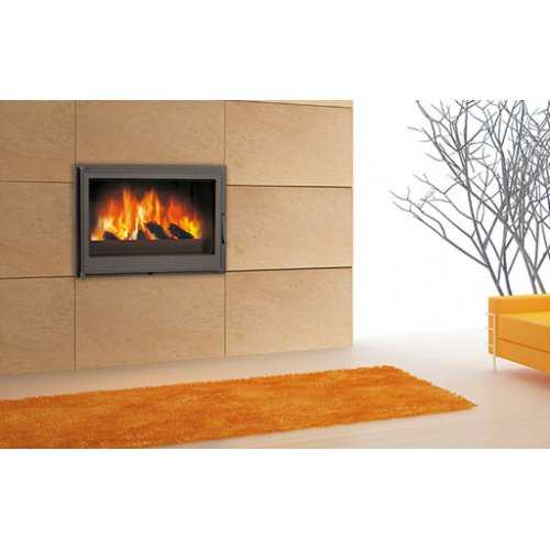 Каминная топка обогревает помещение посредством теплового излучения от чугуна и жаропрочного стекла. Для создания дополнительной площади теплоотдачи топка оснащена системой зигзагообразных ребер на дымосборнике и по всем её внешним сторонам. Топка оборудована удобной герметичной дверцей, на которой закреплено большое обзорное жаропрочное стекло.