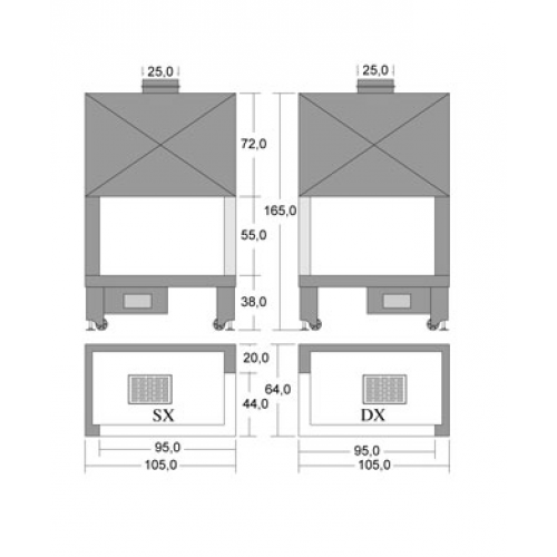 Каминная топка Grilli Caminetti AF 2000 105 SXDX VT Refrattario