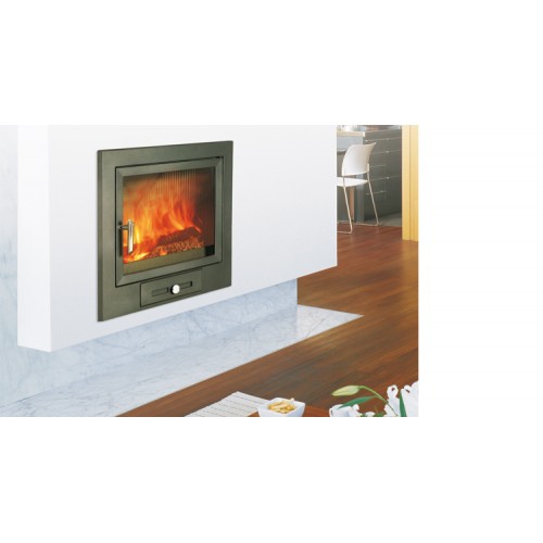 Стильная топка Hergom H02, в которой тепловая мощность отлично сочетается с красотой и чистыми линиями, управление осуществляется регулятором, который расположен под ящиком для золы.