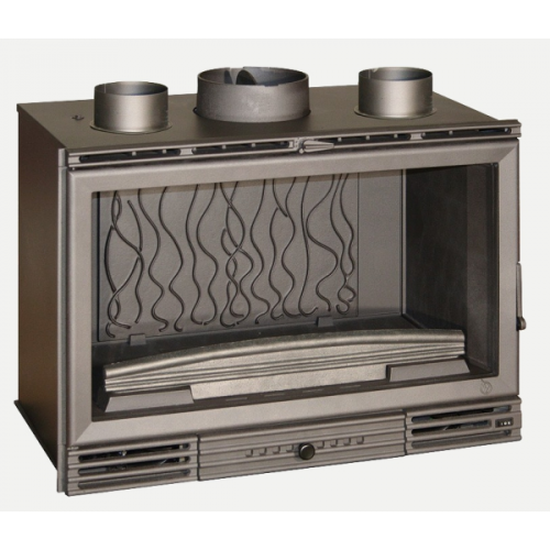 Чугунная вставка для камина Invicta Vizon Total 800 turbo снабжена уникальной системой самоочистки стекла - воздушный поток, направленный на стекло в дверце, самостоятельно очищает его от наседания копоти и грязи. Каминная топка также снабжена высоким дымосборником для обеспечения тяги в дымоходе, жестким корпусом со множеством ребер для увеличения теплоотдачи и прочности изделия, чугунным дефлектором (пламярассекателем) для защиты дымохода от термонагрузки, двойной задней стенкой для повышения срока службы топки, выдвижным зольным ящиком для удаления золы во время горения и регулятором подачи воздуха для более экономичного расхода дров. Прямое стекло, вставленное в дверцу, является закаленным и способно выдерживать температуру до 750 0С.