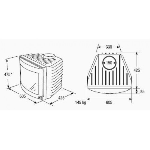Имеется двух размеров и подходит для всех открытых каминов. вставной элемент изготовлен из высококлассного чугуна с гарантией на 10 лет (не относится к стеклу). Двери с цельными, круглыми панорамными стеклами.