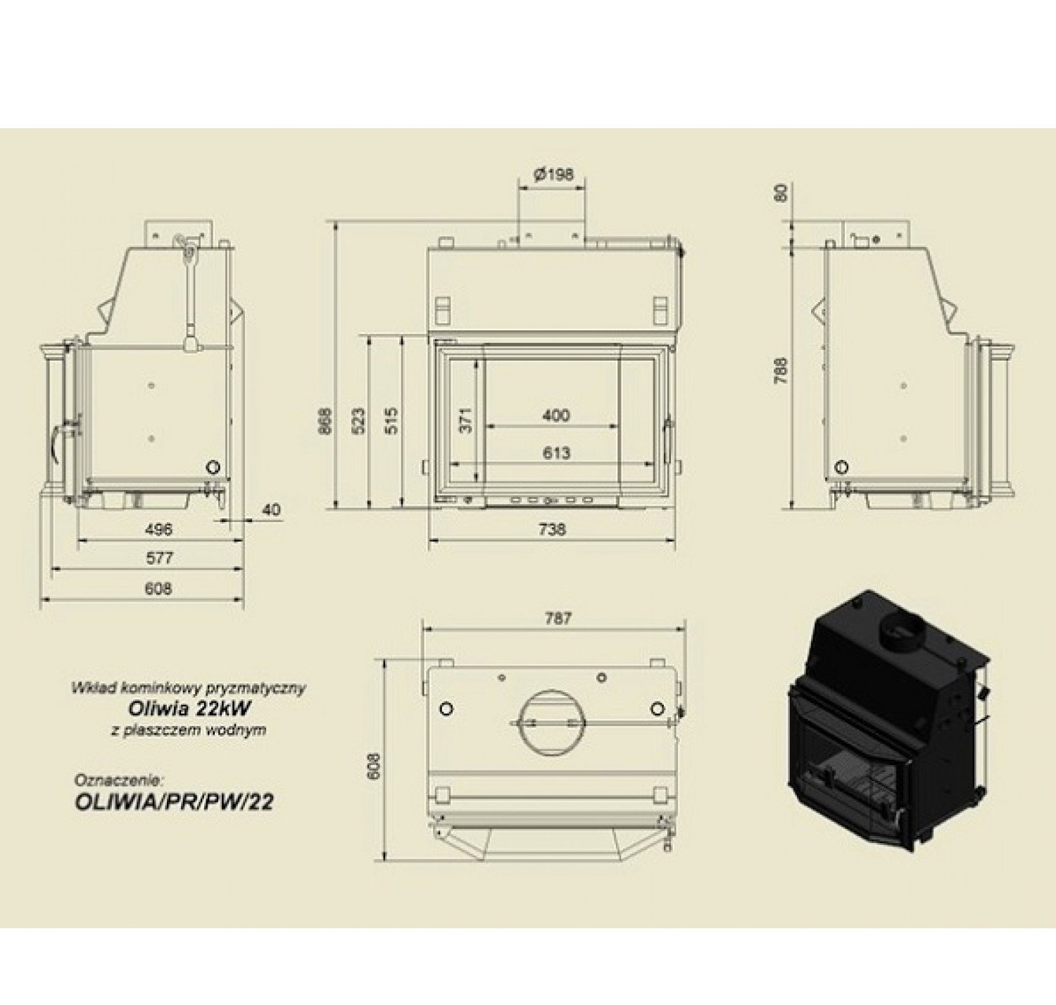 Каминная топка Oliwia/PR/PW/17 с водяным контуром