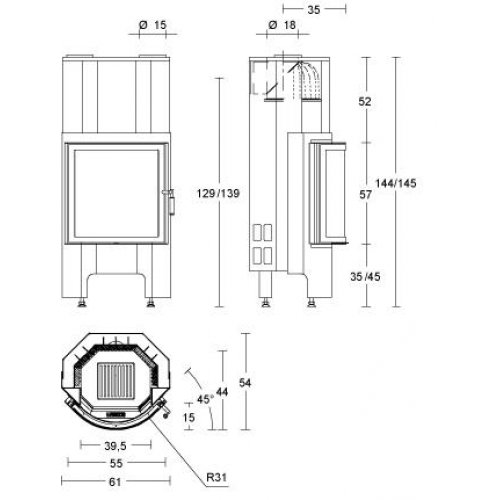 | Выход дымохода | O см | 18 |
