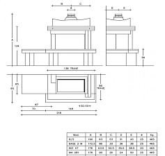 Топка имеет сквозное стекло. Подъемная дверца с жаропрочным стеклом, что позволяет наслаждаться открытым огнем, которая открывается на петлях для чистки. Стальной кожух и внутреннее основание из чугуна обеспечивают прочность и долговечность. Имеет современный дизайн.