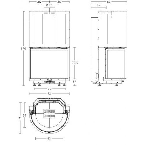 Вы можете наслаждаться панорамным видом огня через вертикально скользящую дверцу без нижней рамки. Такая дверца подчеркивает  изящество  и безупречность стиля топки. Стекло уплотнено металлической конструкцией, предотвращающей выход дыма при открывании и закрывании дверцы. Дверца может быть сделана на петлях, что упростит обслуживание и чистку топки.