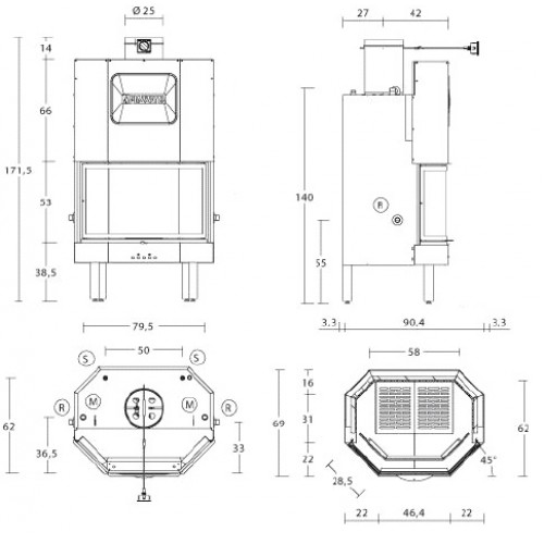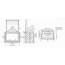 - Проем: Дверца из эмалированной стали с жаропрочным стеклом, выдерживающим температуру до 750°, с самообдувом. Подъемная дверца, установлена на петлях для облегчения читки.