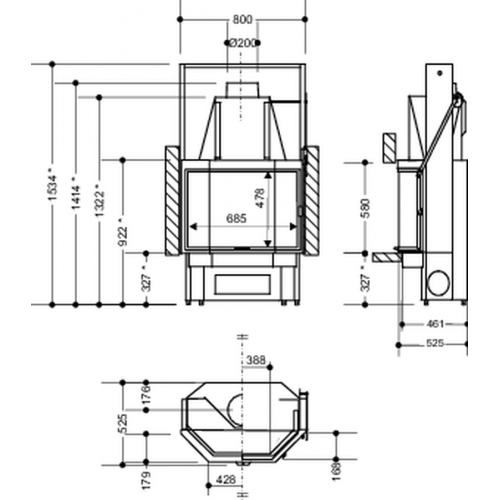 - Диаметр дымохода 200 мм