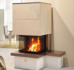 - Каминная топка для угловых каминов, с цельным, угловым стеклом.