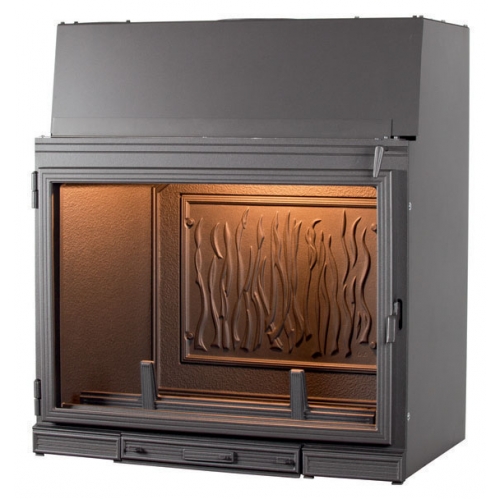 - Сама топка без подъема дверки вверхРегулируемая шиберная заслонкаУмное устройство для открытия "шибера"Зольный ящик (внутри топки)Задняя стенка "языки пламени"Регулировка подачи воздухаРассекатель пламени