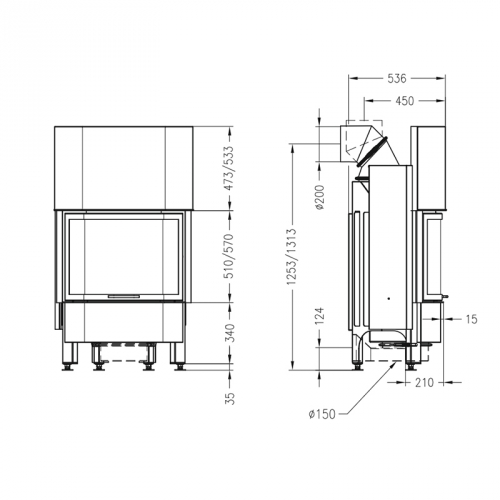 - Опциональная комплектация дополнительной задней дверцей для закладки дров из подсобного помещения.
