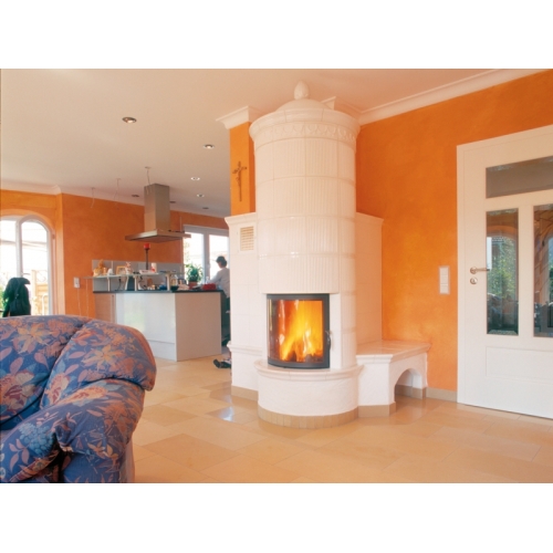 Каминная топка Spartherm Speedy R из стали толщиной 4/5 мм с антикоррозийным покрытием. Дверца с полукруглымм керамическим стеклом, которая открывается вбок. Шамотный кирпич внутри топки увеличивает температуру в топке, накапливает это тепло во время работы топки, и длительное время излучает его после окончания процесса горения.