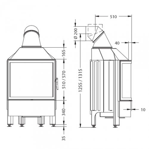 • Диаметр дымохода, мм: - 200