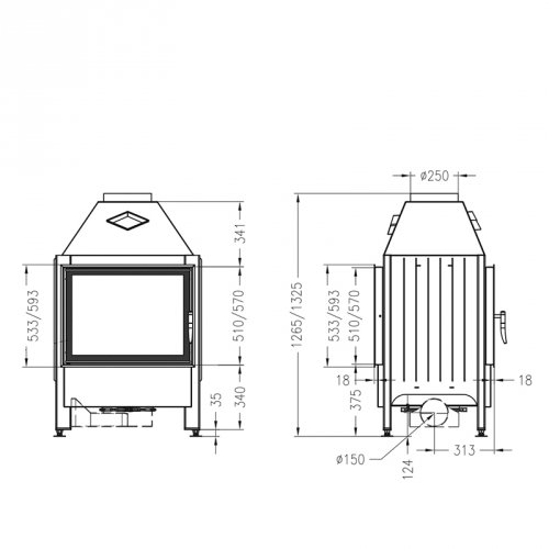В топке имеется система длительного горения и система чистого стекла. Имеется возможность для подвода дополнительного воздуха из других помещений или улицы для процесса горения, что сводит к минимуму выжигание кислорода в помещении во время работы камина.