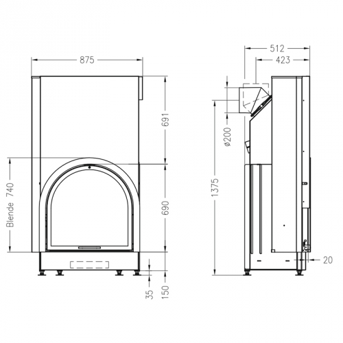 - Диаметр дымохода, мм: - 200