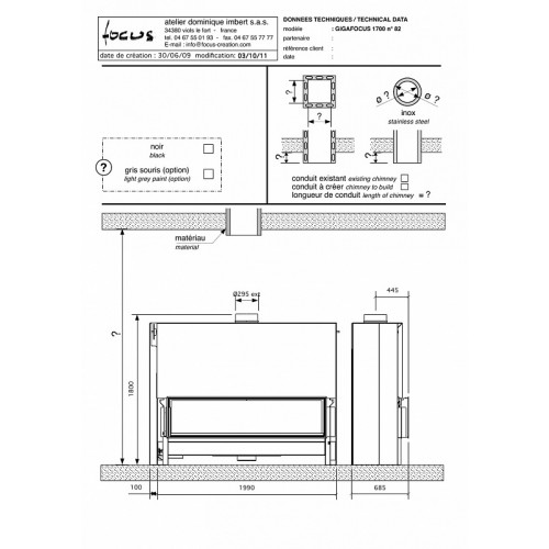 Существует на выбор три ширины портала: (1,50 м, 1,70 м или 1,90 м), который являет собой сочетание эргономичности, простоты и безопасности механизма открытия. Дверь также наклоняется на 45 ° для безопасности очистки. Внутри топка выложена изоляционным материалом из черной стали. Герметичная система прямого притока свежего воздуха (O 160 мм). Верхние и нижние вентиляторы обязательны. Гарантирована эффективность при минимальной длине трубы (внутренней и внешней) в 5 м.