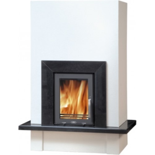 Камин Puris выполнен из высокотемпературной стали и работает на твердом каминном топливе - сухих дровах или древесных брикетах. Номинальная мощность камина - 7 кВт, что позволяет отапливать 70 - 180 м3 жилой площади. Простой прямоугольный корпус камина украшен черным гранитом и небольшой столешницей. Окно топочной дверцы прямое, выполнено из стеклокерамики, способной выдерживать температуру до 800 С0. Конвекционный короб белого цвета. КПД камина достигает 79%.