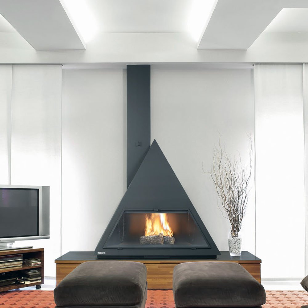 Компактный камин с прекрасным обзором огня, системой двойного дожига и внутренней воздушной камерой.